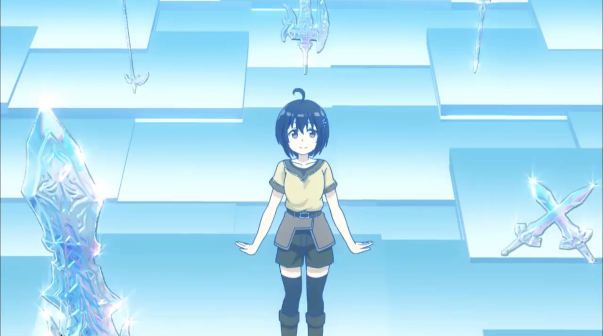In the protagonist's fictional universe, NewWorld Online is a VRMMORPG, or a Virtual Reality Massively Multiplayer Online Role-Playing Game.[1] Much like other MMORPGs, people logging in for the first time are brought to a space where they are allowed to choose their preferred weapon. The weapon they choose highly affects the build of the character they want to have, as many of the game's skills are directly related to the weapon itself.